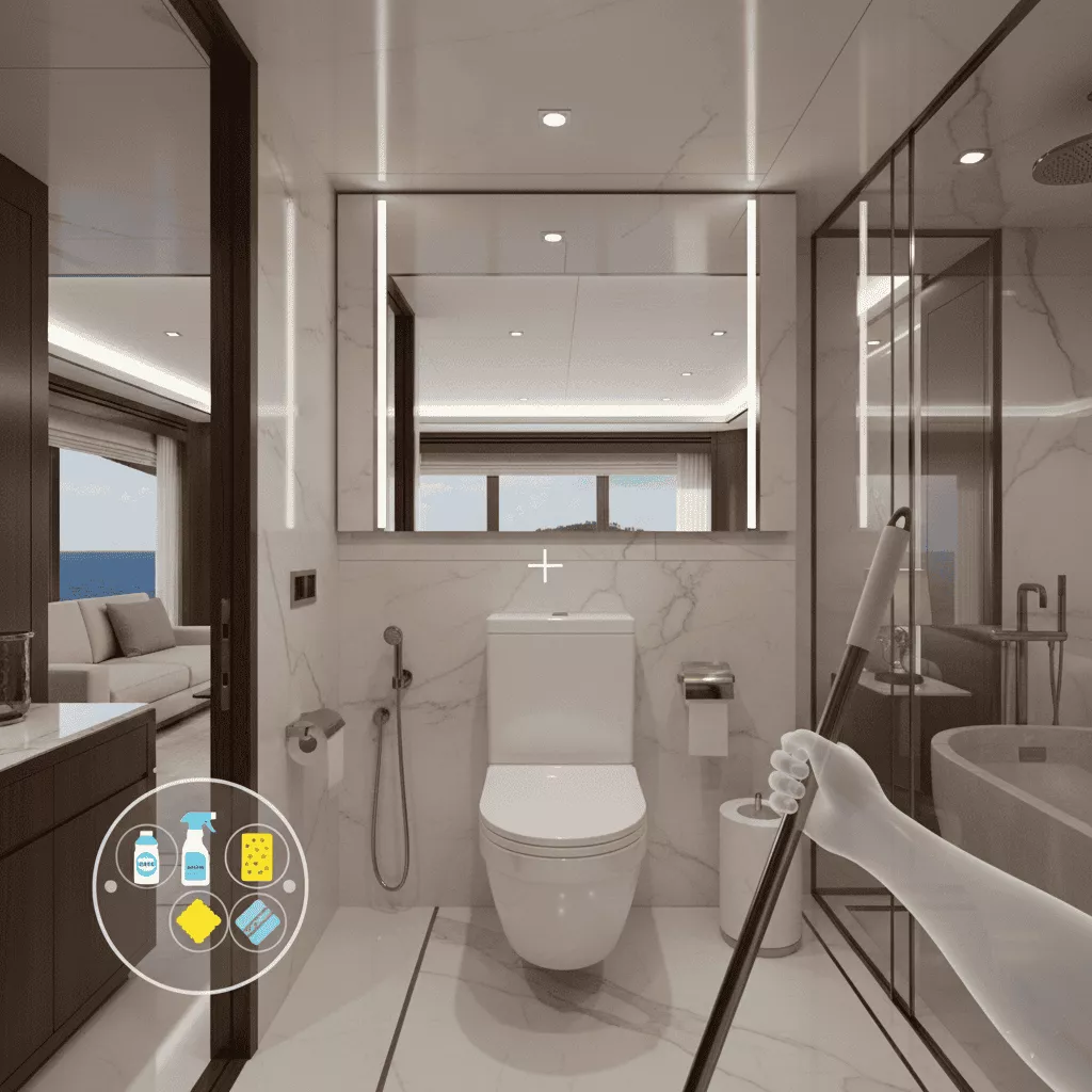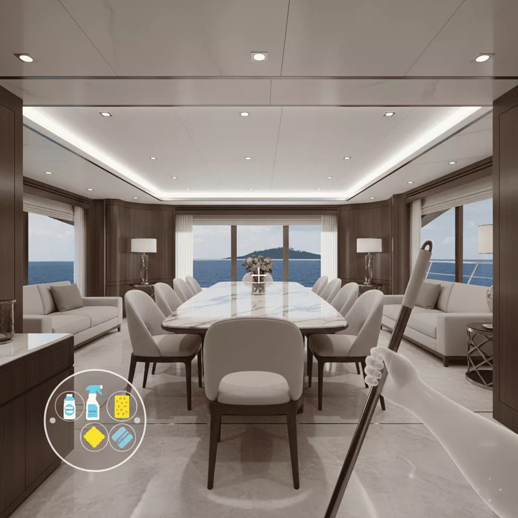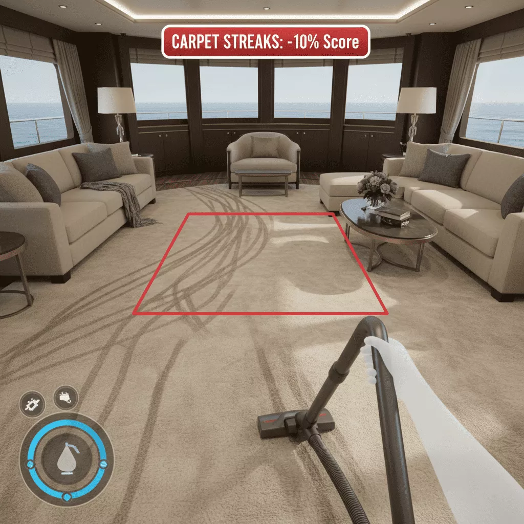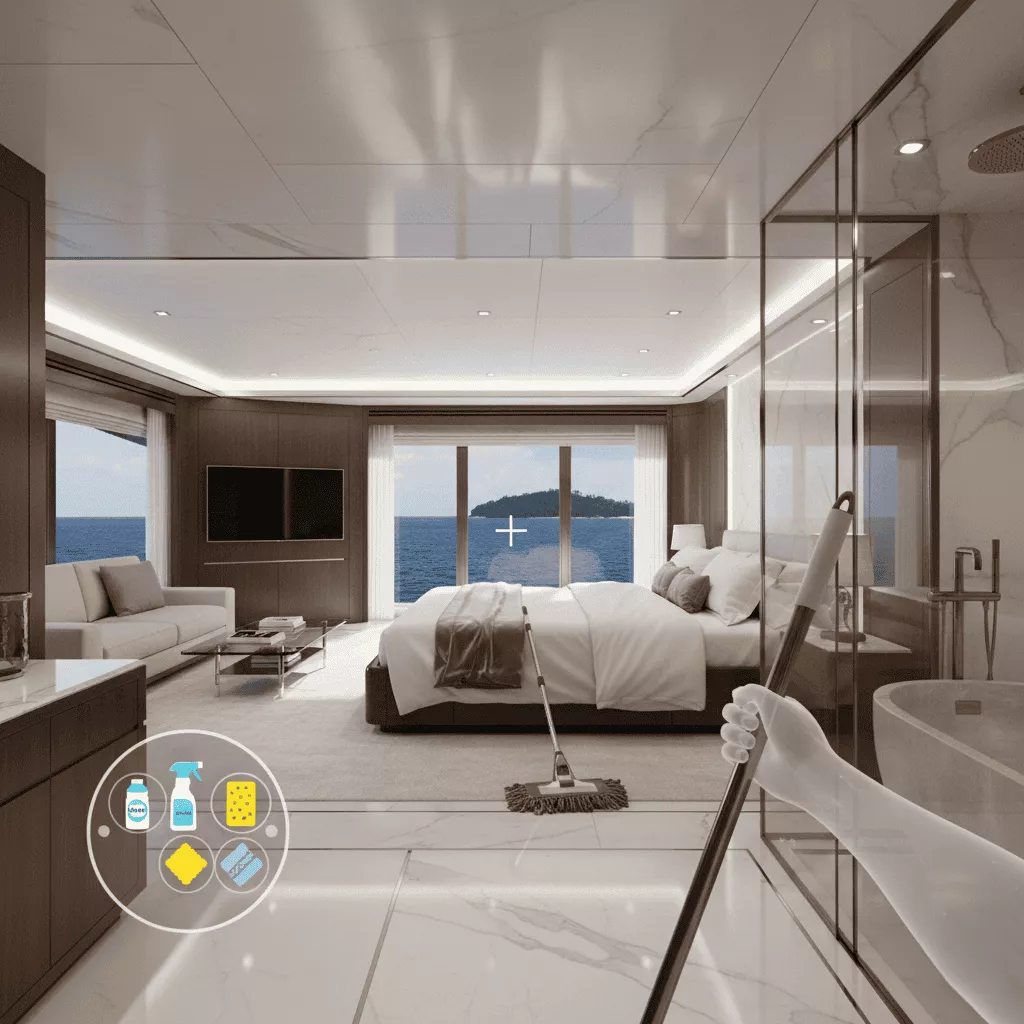 🎮 First-Person Virtual Training Experience realistic superyacht environments. Detect flaws, select correct products, and complete cleaning tasks in immersive first-person view simulations. Practice perfect technique without risk.