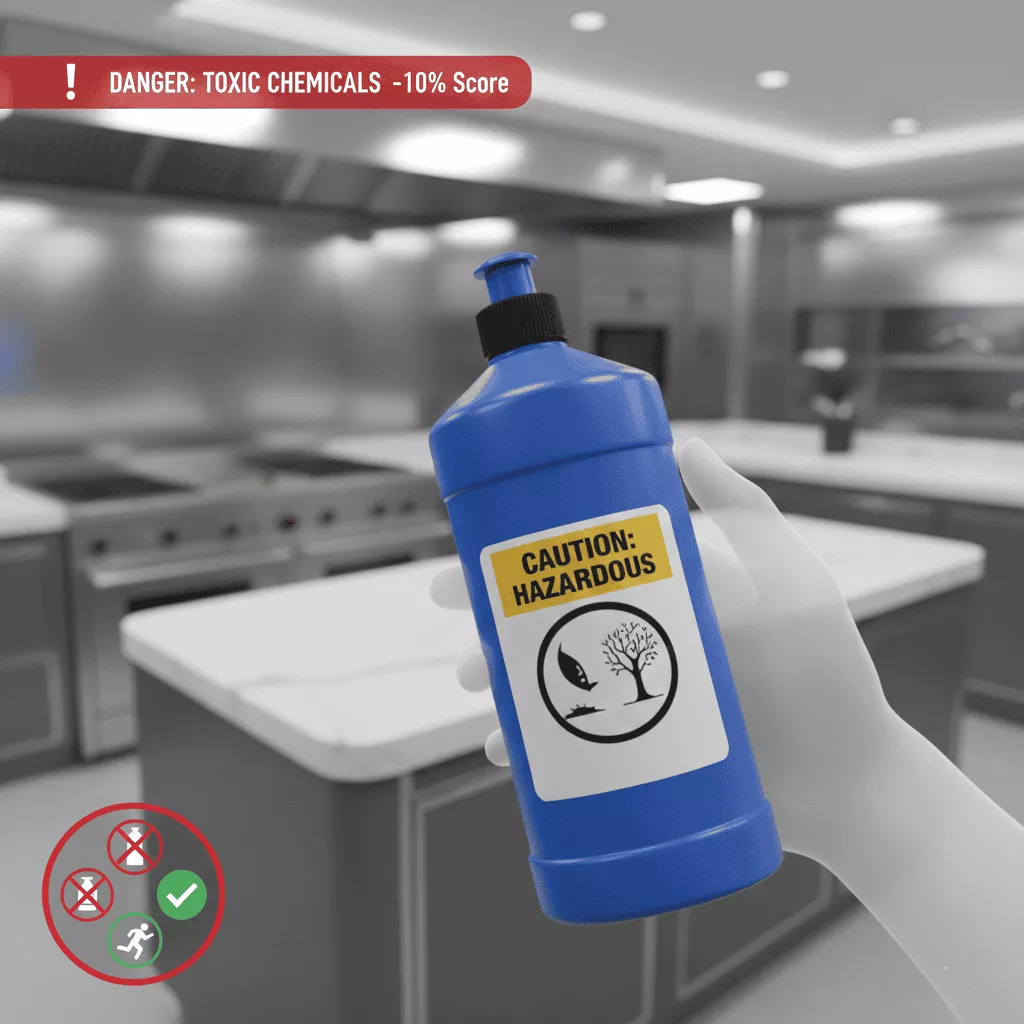 🧴 Product Selection Tasks Face the cabinet of cleaning products and select the correct one for the surface you’re about to clean. Get instant feedback. Learn from mistakes in a virtual environment—not on a guest’s marble countertop.