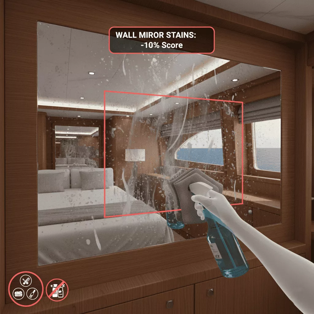 👁️ Flaw Detection Challenges Walk through cabins, bathrooms, and common areas in first-person view. Spot water spots, streaks, fingerprints, and imperfections before they’re pointed out to you. Train your eye for detail in realistic scenarios.